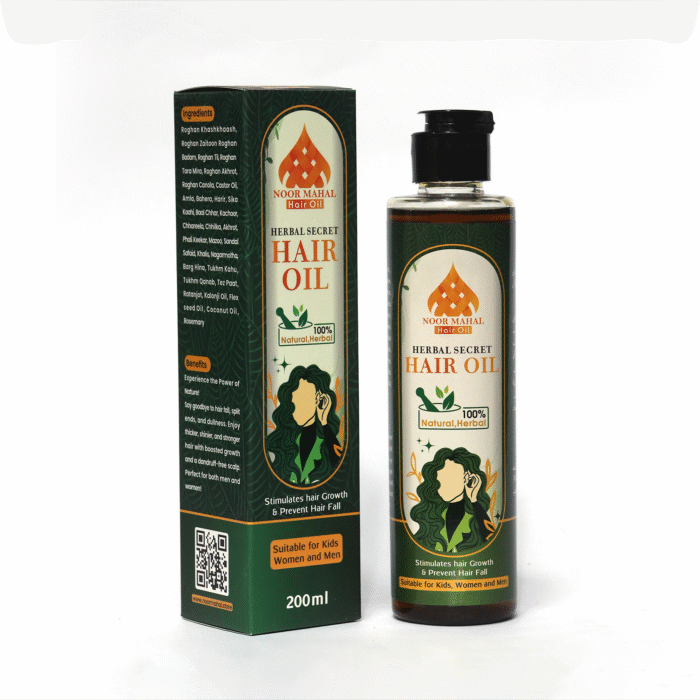 Transform your hair care routine with Noor Mahal Hair Oil – 100% Natural Hair Care Formula, designed to nourish your scalp and bring your hair back to life.